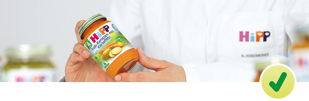 Even more stringent, precise and reliable: parents can put their full trust in the HiPP Organic Seal. Every single jar of baby food goes through up to 260 safety checks (including checks by independent test institutes) to provide you with guaranteed safety. In doing so, HiPP goes far beyond the statutory requirements and international rules on organic farming. This applies for everything from cereal grains to peas, and from milk to apples. Our HiPP experts work together very closely with the organic farms where our ingredients are produced; starting with the choice of cultivation land, soils and seed. This special care and attention continues through the growing process all the way to the harvest and delivery: only when laboratory tests prove the food is perfect are the ingredients released for processing. The result of all this effort is high quality organic baby food which has passed the toughest residue checks. "I vouch for this with my name", Stefan Hipp is quoted as saying on the HiPP Organic Seal; with continuous monitoring of quality parameters, HiPP ensures that parents can absolutely rely on his promise.