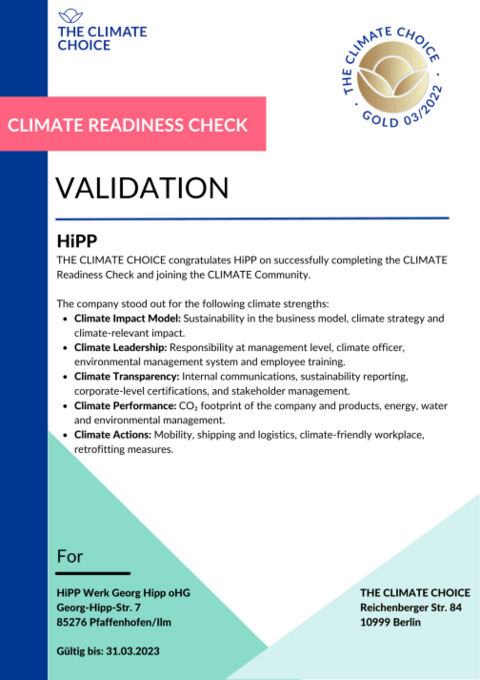 - One criticism of the term ‘climate-positive’ is that it suggests increased consumption of this product is positive for the climate. But the term is not intended to suggest that. However, HiPP wants to offer its customers an opportunity to become part of the global climate protection community by offering products with a reduced climate footprint, which was viewed recently as climate-positive on the balance sheet. 25 years after the signing of the Kyoto Protocol, we assume that consumers understand that, according to the current state of the art, every product generates greenhouse gas emissions.